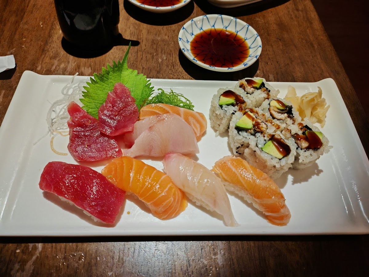 Their lunch specials are so good! I definitely will come back to try their other options. Miyabi Lunch: Literally was in heaven the entire time I was eating. The fish was very fresh and they don't skimp either. I had the eel cucumber roll with it and it was delicious as well. Their sauce is on the sweeter side but I like it. Two Roll Lunch: My friend chose a salmon avocado roll and shrimp tempura roll. Huge pieces of fish! MAKE A RESERVATION! They get super busy (as they deserve to be!) and walk-ins may take some time to be seated as it is a pretty small space. I had a reservation for 1:30, showed up on time, was seated within 2mins :) I also liked watching the chefs prepare everyone's dishes! Lots of love and work go into their food and it does not go unnoticed. Will be back!