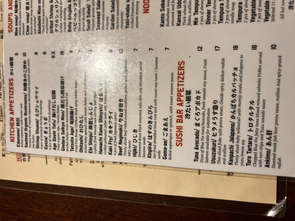 Yamagobo, cucumber, spinach, avocado, asparagus, kanpyo, oshinko and shiitake.